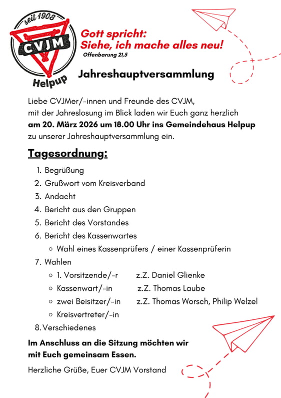 Als Verein bekennen wir uns zu Jesus Christus als Gottes Sohn und Heiland der Welt und Gottes Wort ist die Richtschnur des Glaubens und Lebens. In diesem Bekenntnis steht der Verein in der evangelischen Kirchengemeinde Helpup (www.kirche-helpup.de) und beteilitgt sich aktiv am Gemeindeleben im Hören und Dienen. So steht es in unserer Satzung und das macht uns aus. Grundlagen unserer Arbeit sind die "Pariser Basis" von 1855 des Weltbundes CVJM und die Zusatzerklärung des CVJM-Gesamtverband Deutschland. Das bedeutet für uns:
